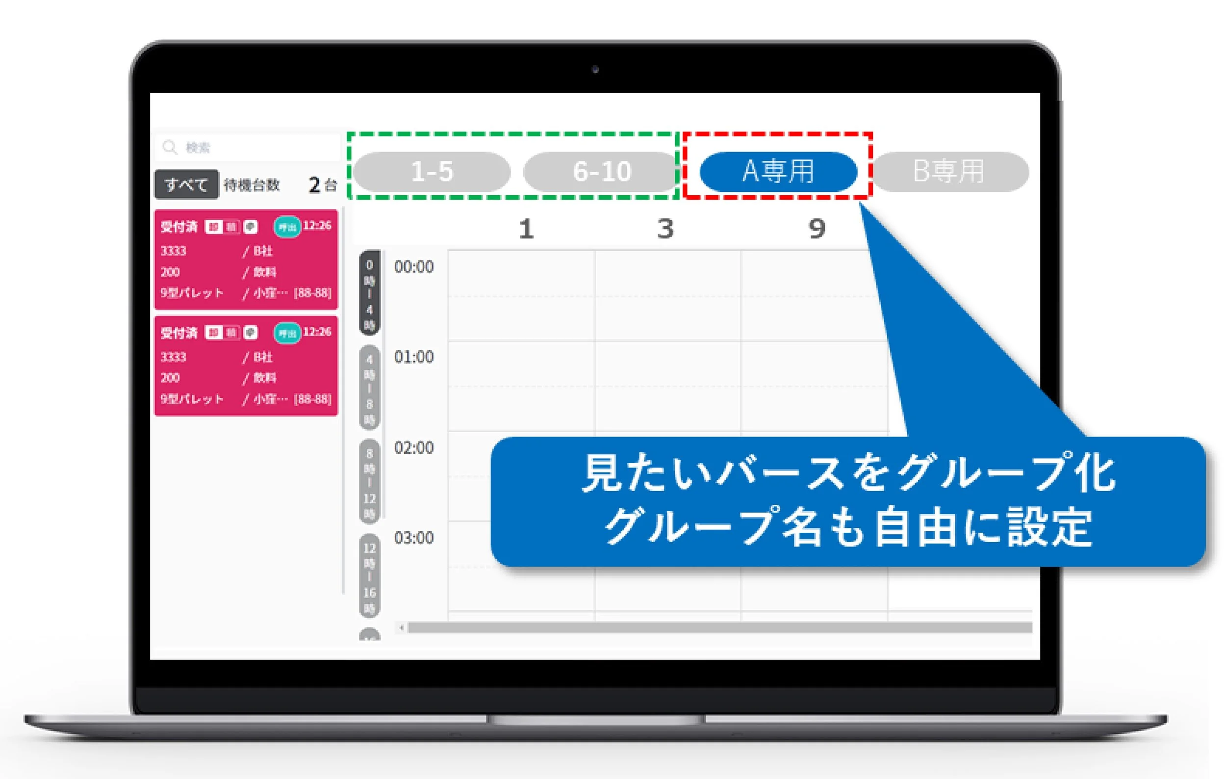 自身で管理したいバースをグループ化することで、視認性の高い画面操作が可能になります。