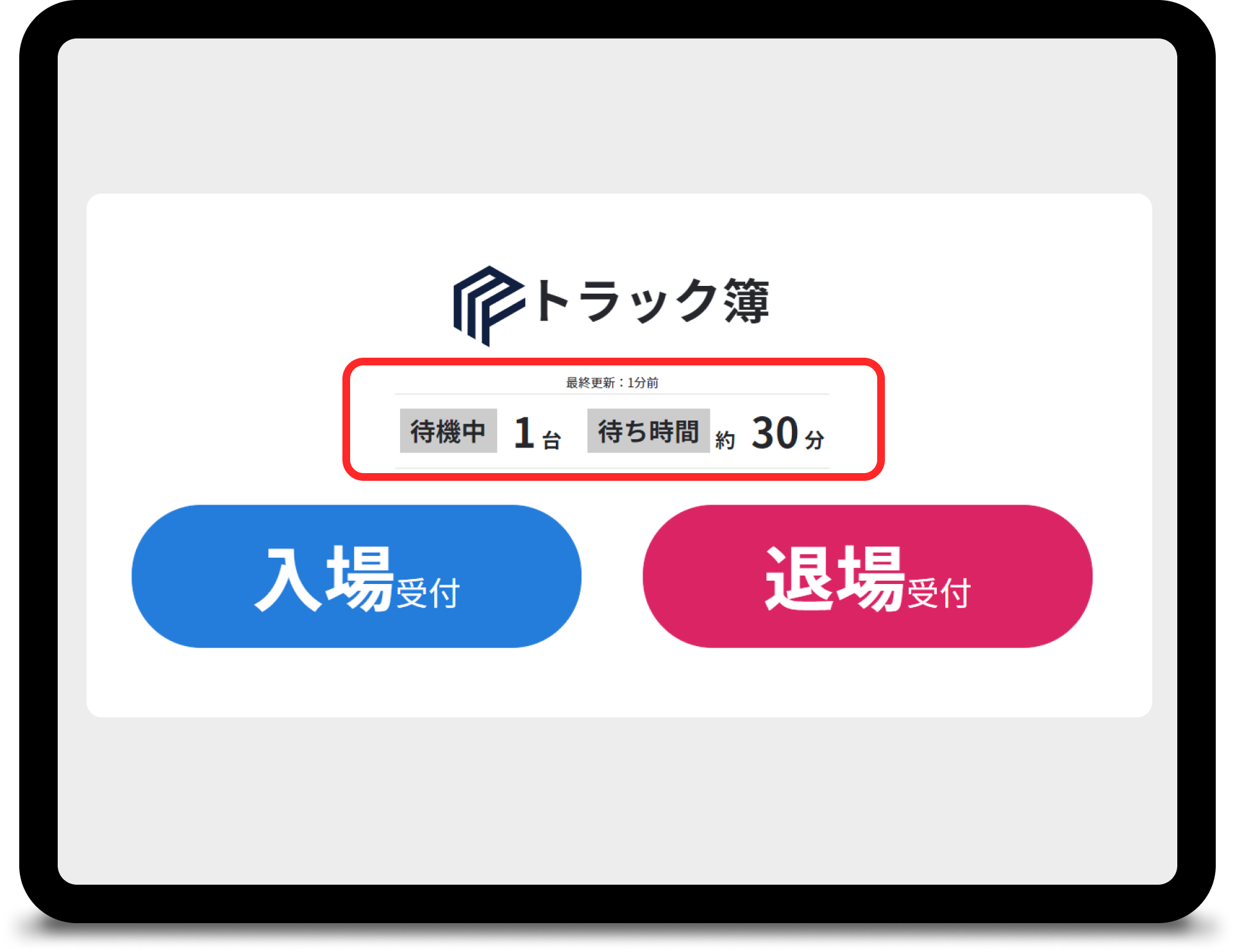 受付画面のTOPに待機台数・待機時間を表示できます。