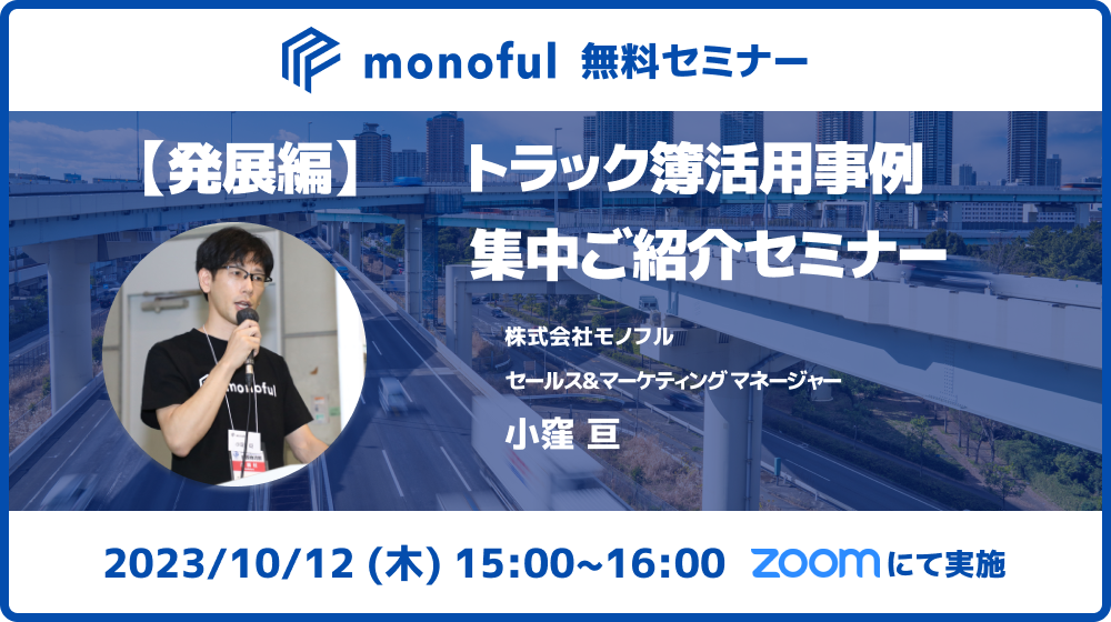 モノフルやトラック簿の基本的なご説明は短くなっておりますので、初めての方は別途開催しております基礎編ウェビナーにもご参加ください。